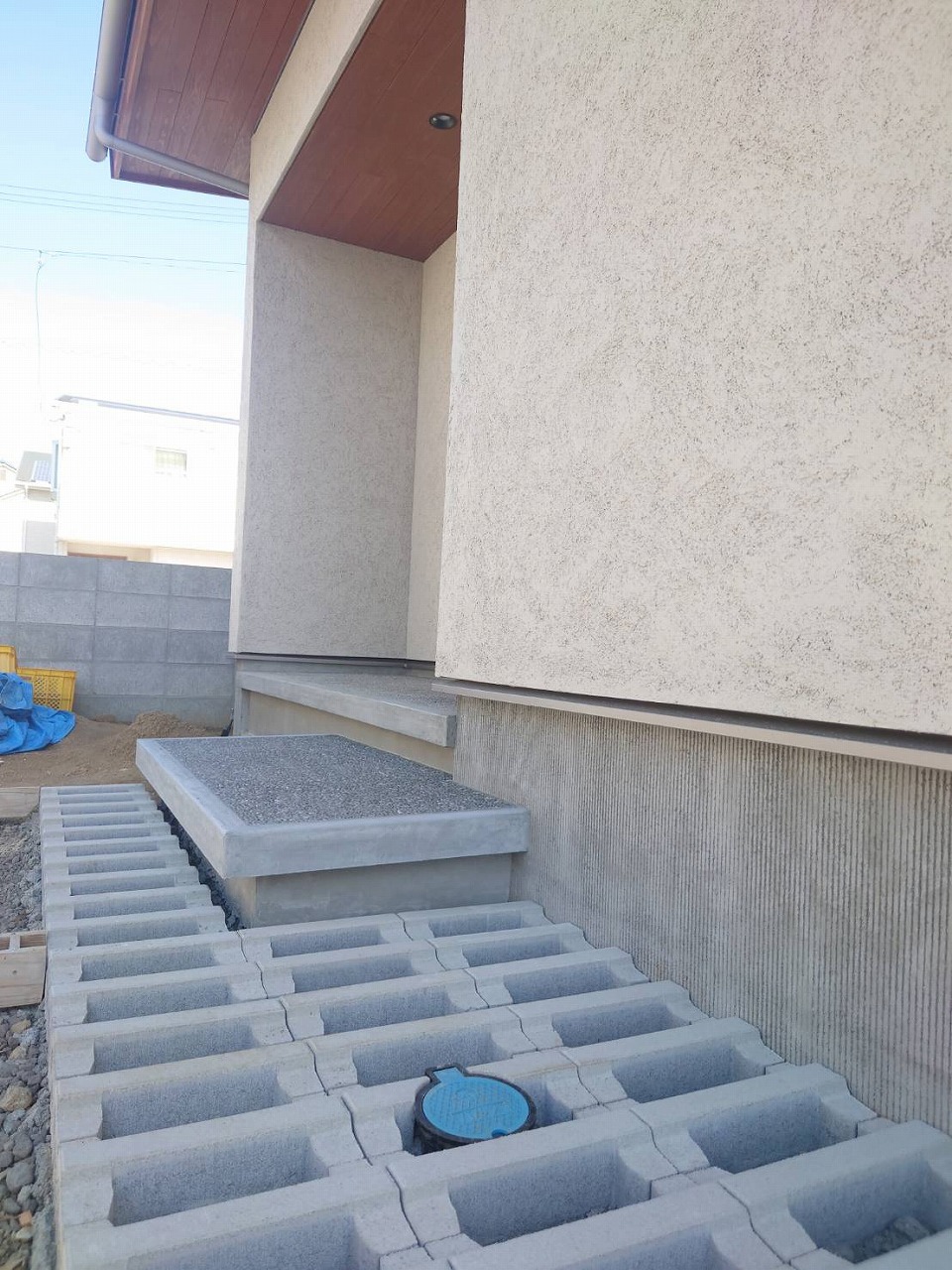 穴が開いているラインに土や砂利を入れて仕上げます。